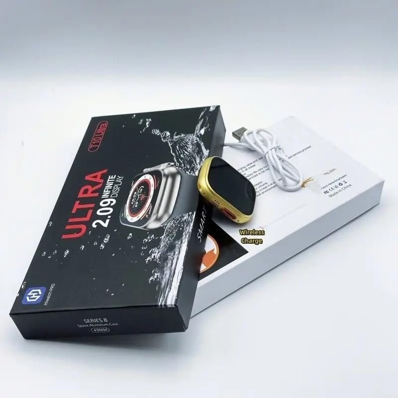 T10 Ultra Smartwatch, 2.09″ Big Screen, Calling, Wireless Charging, Sleek Design, Metal Body with Activity Tracker